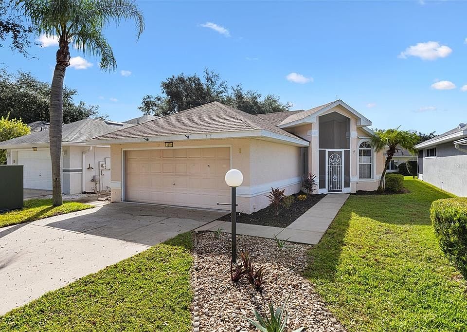 COMPLETELY REFRESHED - NEW ROOF BEING INSTALLED, Move-In Ready. This 3-bedroom, 2-bath Topaz model in Royal Highlands has undergone extensive work and is now ready for immediate occupancy. If you saw this home before, it's time for a second look. Recent major improvements include a brand new roof (2025), new hot water heater (2025), new microwave and refrigerator (2025), deep cleaning throughout, and new carpet in both guest bedrooms. This open concept home features a living/dining area with ceramic tile flooring and a separate office/family room with laminate flooring. The spacious master suite includes a large walk-in closet, laminate flooring, and a master bath with dual vanities, walk-in shower, and private commode room with bidet. The kitchen overlooks the main living areas and includes range, refrigerator, dishwasher, and double sliding door pantry. The guest wing has a pocket door entry leading to 2 freshly carpeted bedrooms separated by a guest bath with shower/tub combination and bidet. The inside laundry room includes washer, dryer, utility sink, and ample storage. Additional features include solar tubes for enhanced natural lighting, a 2-car garage with shelving and sliding screen doors, hurricane shutters, lighting rods and a paver patio with awning. Royal Highlands is a gated 55+ active adult community featuring the 18-hole Monarch Golf Course, pro shop, restaurant, two community centers, indoor and outdoor pools, fitness center, live theatre, billiards, library, tennis and basketball courts.