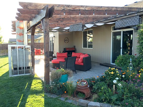Corner lot with a fenced backyard on the edge of subdivision, offering a peaceful, country setting right in town. Custom barn doors, very open living space, and personal touches make this home cozy and inviting. There is a large den with vaulted ceilings and great natural light that could be used as an office, playroom, or craft room. Master bathroom features his and hers walk in closets. Master also has access to the patio. This backyard needs no work! There's a perfect spot for boat/RV parking, a pergola with custom shades and lights, and a built in fireplace (near completion - photos to come). Contact the owners for a tour today!