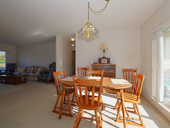 Bright and spacious home, walking distance to everything! This lovely home features an open living space with cozy gas fireplace for those chilly fall days. Two large decks, one off the living room and one off the dining room, provide ample outdoor space without the maintenance of a yard. The primary suite features an updated walk-in-shower and a walk-in-closet! Prefer a bath? The second bathroom has a bathtub! Only steps to the Activity Center and a short jaunt to shops and anything else you might need. This well maintained 55+ complex is in a prime location! Plenty of extra storage in the crawl space off the garage. Book your viewing today!