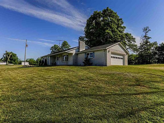 Well maintained 3 bedroom, 2 & ½ bath, brick rancher on almost 2 acres. Features central air, Living room with wood fireplace, 1st floor laundry, 2-car attached garage. Full basement with brick wood fireplace is ready to be finished to almost double your living space. Enjoy nature in the beautiful back yard, covered patio, great for entertaining. Storage above whole house/garage. 1 owner. Come home to peace and serenity.