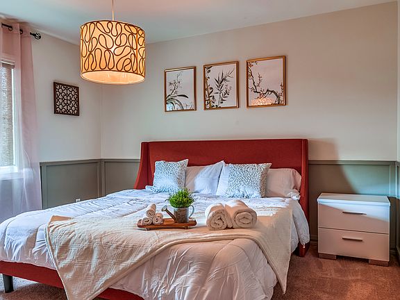 LUXURY FULLY FURNISHED HOUSE with 7 bedrooms and 4.5 baths. It is a Duplex building with separate entrances one for the guest house. The Main house has 5 bedrooms with King beds, 4.5 baths, an open-concept living room and a full kitchen. The garage was also converted to storage. Make your appointment for a tour.