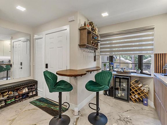 Monthly rate advertised subject to length and 3+ months off season lease. October and later in season rate of $4750 and up to $7000 for December January and February. Subject to change and other terms of the lease contract. pricing inquiries. Prices are subject to change due to availability, duration of stay and months chosen. This fully furnished 2-bedroom, 2-bathroom condo invites you to stay longer, with its meticulously decorated, contemporary design featuring touches of luxury. Recently remodeled with premium materials, it offers an open-concept kitchen and living area with plenty of space to relax. The living area seamlessly connects to a screened balcony, creating even more open space when the electric folding zebra blinds are raised, allowing easy access through sliding doors. These blinds not only provide privacy when needed but also help create a light, airy feel when fully opened. The kitchen is designed for style and functionality, with 42" custom European cabinets, level 4 quartz countertops, a built-in counter-depth fridge, induction cooktop, convection microwave oven (Bosh), ultra-quiet dishwasher, water filtration system, and a custom wine bar corner that doubles as a work area. Exceptional sound insulation enhances privacy, with concrete block walls between units and an acoustic-paneled wall in the living room. Floating cabinets with a built-in fireplace bring unique charm and a cozy ambiance to the space. LED lighting throughout ensures every corner is well-lit. Both bathrooms are fully remodeled to match the condo's distinct design, each featuring spa-like rainfall shower systems with handheld wands. The guest bathroom also includes a bidet. The master bedroom features a sturdy king-size bed, while the guest bedroom has a full-over-queen bunk bed. The in-unit laundry includes a smart and quiet washer and dryer. In addition, the community offers a refreshing 8.5-foot-deep pool. Perfectly located just a short drive from the beach and ample shopping options, this unit sits at the rear of the complex, away from the main road, offering enhanced privacy and a lounge-like feel on your private screened balcony.