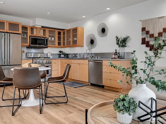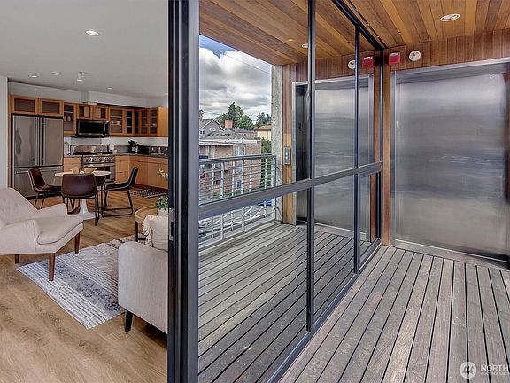 Experience refined urban living redefined in this stunning condo by the award-winning team at BUILD LLC. Enjoy an open-concept living area w/floor-to-ceiling windows & new LVP flooring thru-out. Gourmet kitchen w/commercial-grade appliances & a gas cooktop. The expansive primary bedroom offers sliders to a private, vast deck w/a sunset view. The versatile office den functions as a 2nd bedroom. The spa-inspired bathroom features a large counter w/2 sinks & a deep soaking tub. New paint/new carpet/5-inch baseboards, radiant heating and 1 assigned parking. Stroll to Coffee shops, Whole Foods & LightRail sta, just blocks away from UW, U Village & Green Lake. Rental cap is still available for investors, HOA dues include gas & internet.