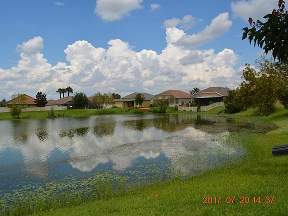 Breathtaking view from the screened in porch, of this lake front estate located in Village of Bridgewater. This 4-bedroom, 2 bath home features open layout with architectural touches throughout. The kitchen features granite countertops, stainless steel appliances and eat in space, yet its flows into the large family room. There are brand new LVP floors in the living areas, tile in wet areas and brand-new laminate in bedrooms. The master bedroom is spacious, and the master bath has a spa, dual sinks, and walk in closet. The community features great amenities, like 5 lakes great for fishing or canoeing. A fantastic clubhouse with fitness center, playground, tennis courts, basketball court and resort-style pool. Call today for a showing. Photo link