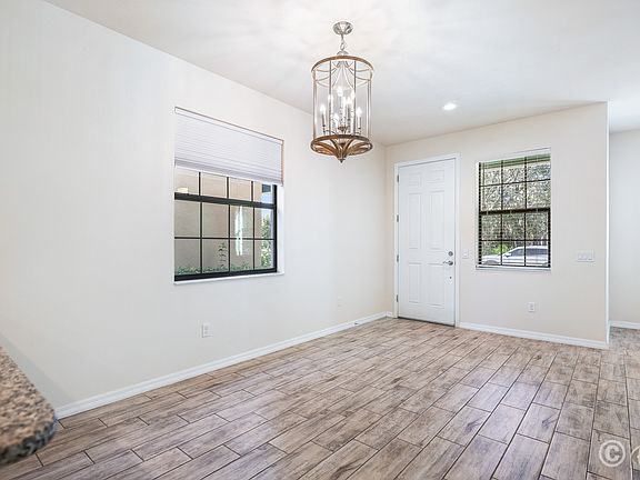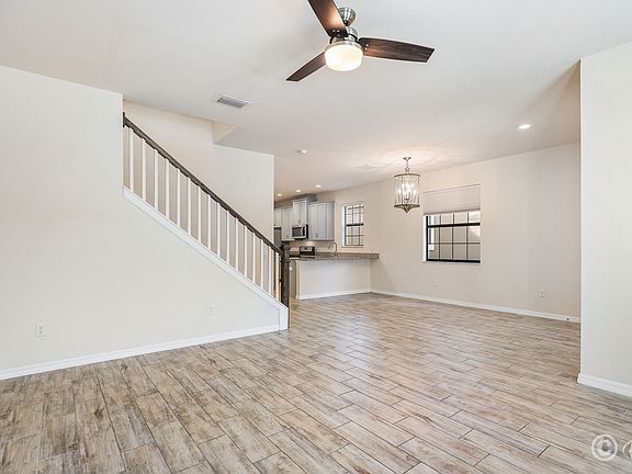 Step inside to a bright foyer and discover rich wood-look ceramic tile that flows seamlessly throughout the main living areas. The open family room and dining nook are enhanced by a stylish ceiling fan and decorative lighting, creating an inviting atmosphere for everyday living and entertaining.