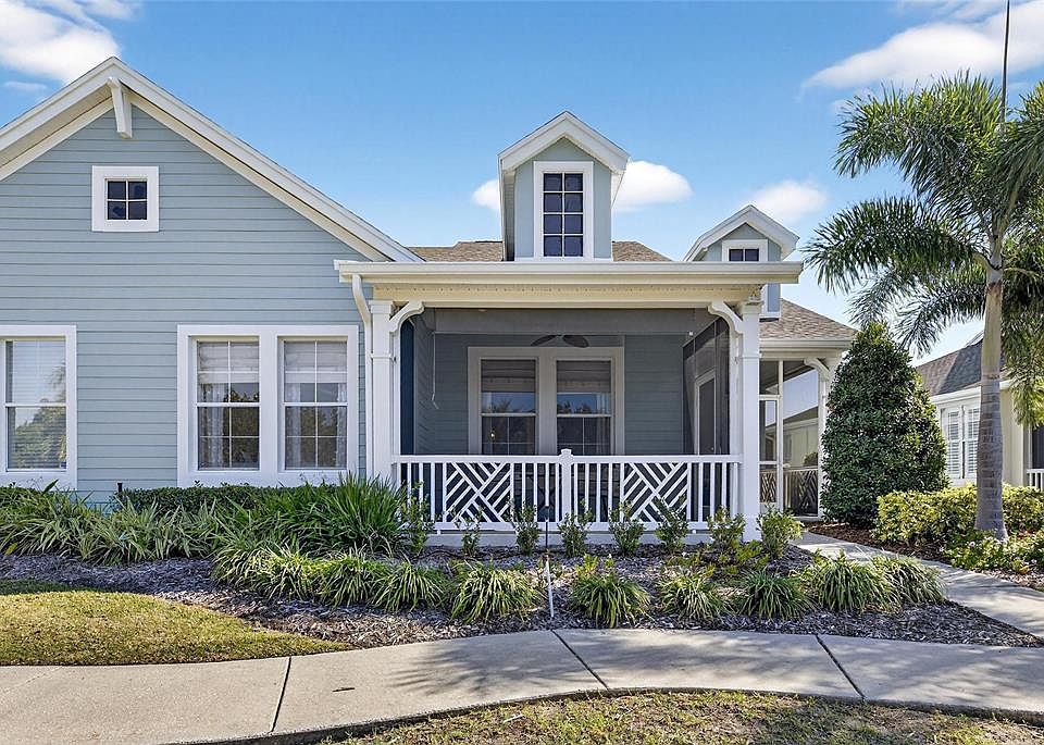 5612 Golden Isles Drive is a 2-bedroom, 2-bathroom villa with a den, 1,750 sq ft, built by Standard Pacific in the Seacrest neighborhood of MiraBay. This home sits on one of the most desirable lots in the community, located on a cul-de-sac with an extra-long driveway, wide spacing between neighbors, and front and back waterfront views. The property overlooks the largest pond in Seacrest from the back screened lanai, and also has views of a canal, a conservation strip, and one of MiraBay’s walking trails. This location is hard to beat. The popular Tidewater floor plan offers a functional layout and a bright, open feel. The shared villa wall is built with sound-reducing construction that continues fully through the attic for added privacy. The home has been extremely well-maintained with significant recent updates. Improvements include a brand-new roof, new interior and exterior paint, new bathroom cabinetry, and high-end quartz counters in both bathrooms. The kitchen features newer gas appliances, new light and bright quartz countertops, under cabinet lighting, a coordinating backsplash, a spacious pantry, and a café-style breakfast nook with built-in bench seating. The main living areas have tile flooring, and the bedrooms feature real Brazilian cherry hardwood—no carpet anywhere. Showers have upgraded glass doors installed, and the primary bedroom and formal dining room and Primary bedroom includes a tray ceiling and a split floor plan for privacy when guests visit. The den at the back of the home with french doors and a large oversized space offers peaceful canal views and makes a perfect office or hobby space. There is also a flexible formal dining area that can be used as a sitting room, music space, second office, or anything you need. Built-in features in the living room, laundry and secondary bedrooms add extra storage and functionality. Both the front and back screened lanais are equipped with pull-down privacy plantation shutters and shade blinds. The garage includes overhead storage racks. The homeowner has invested in additional landscaping with flowering shrubs and large foxtail palms, making the yard stand out even though the HOA covers general exterior maintenance. There is also space to add a small fenced-in area for pets. ADDITIONAL IMPORTANT UPDATES AND FEATURES: new AC 2024. New Water Heater 2024, New Exterior Paint 2024, New Roof 2024, Whole house Surge protector, New Interior Paint. The low HOA covers exterior irrigation, landscaping, lawn care, periodic exterior painting, and reserves for future roof replacement, offering a low-maintenance lifestyle. MiraBay Amenities: MiraBay is a gated, golf-cart-friendly community with a 24-hour fitness center, resort-style pool, clubhouse, café, tennis courts, pickleball courts, basketball courts, playgrounds, parks, and miles of walking trails. Residents also enjoy kayak and paddleboard access, a community boat lift, and a full calendar of activities and events.