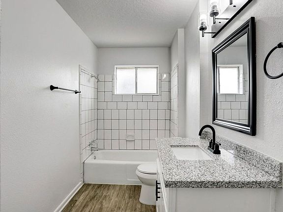 Gorgeous 3 bedroom home that has been recently updated. No carpet! The kitchen has been updated to have silestone counters, subway tile backsplash, and new white cabinetry. Gorgeous tile flooring and stainless steel appliances too -refrigerator included! Bathroom features the same tile backsplash and includes a shower/tub combo. Lots of natural light and a spacious yard with tons of greenery!