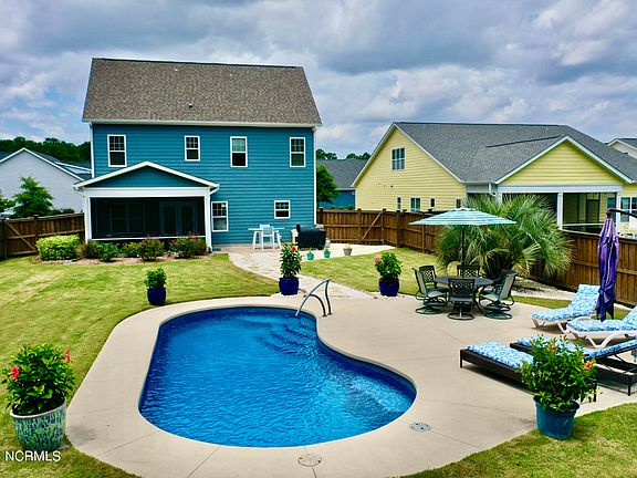 Welcome to your Dream Home! This Stunning 3-story Four Bedroom Plus Bonus Room Home features an In-Ground Pool and a Large Backyard backing up to a Private Wooded Area, offering a Serene Retreat for Relaxation and Entertainment. Upon entering the foyer, you are greeted with a formal dining area adorned with elegant wainscoting details. The adjoining kitchen is a chef's delight, equipped with granite countertops, a subway tile backsplash, and pendant lighting over the island. The abundant cabinetry provides ample storage space. The open layout seamlessly connects the kitchen and great room, creating a perfect space for easy living and entertaining. Step outside to enjoy the beautifully landscaped yard, featuring a stone patio and a large screened-in porch - ideal for outdoor gatherings or peaceful evenings. Upstairs, you'll find the luxurious owner's suite and three additional bedrooms. The oversized owner's suite boasts a walk-in closet, double vanity sink, tile shower, and soaking tub, providing a spa-like experience right at home. The third floor offers a versatile bonus space with a full bath, perfect for a home office, guest suite, or recreation area. Situated just off Piner Road, this home is centrally located near shops, restaurants, Carolina Beach, Kure Beach, and much more! This exquisite property is sure to impress and won't last long on the market.