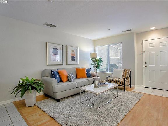 Beautiful 2 bed, 2.5 bath updated townhouse. Conveniently located within close proximity to BART, shopping and easy freeway access to I-880 and Dumbarton Bridge. Only a short distance to Tesla and Facebook, the Peninsula and Silicon Valley. Open, two story floor plan offers an inviting family room and dining area combo with a beautiful fireplace with architectural features. The updated kitchen with granite counter tops, newer stainless steel appliances and sliding glass door offers functionally and convenience and opens to the private patio space. Home has central heating and air conditioning . The master bedroom offers cathedral ceilings, his and hers closets, double sink vanity and large tub. Other features include hardwood flooring throughout, recessed lighting, indoor laundry room with built in cabinets and 1 carport + 1 car attached garage. The community pool and great open lawn area is perfect to have fun or just relax.