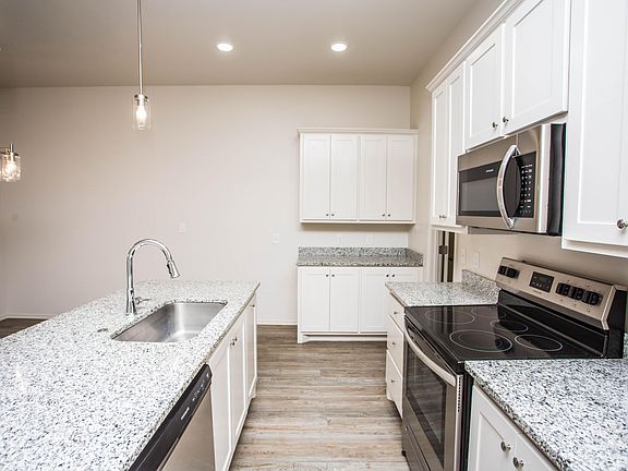 Stainless appliancesGranite countertopsVaulted ceilingsModern open layout