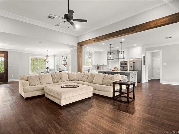 Step into a life of luxury and elegance at 5613 Monarch Way, nestled on 7.5 secluded acres in the highly sought-after Morganfield community of South Lake Charles. Built in 2017 by the acclaimed J. Doucet, this 4,000-square-foot estate offers four spacious bedrooms and three beautifully appointed bathrooms. The heart of the home is the gourmet kitchen, a dream for any chef, featuring double-stacked granite countertops, top-tier stainless steel appliances, a six-burner gas stove, and an oversized island that effortlessly flows into a sunny breakfast nook and formal dining area. Perfect for both everyday living and entertaining, the open layout is designed with sophistication and comfort in mind. The luxurious main suite is your private retreat, complete with a spa-like ensuite that includes double vanities, a walk-in shower, a clawfoot tub, and a private water closet. Ask agent about the "hidden room". One additional bedroom on the main floor and two more upstairs, connected by a Jack & Jill bath, offer ample space for family and guests. Outside, enjoy alfresco dining in the fully equipped outdoor kitchen, surrounded by the tranquility of nature and regular visits from local wildlife. The property also features a two-car carport, an air-conditioned workshop, and extra storage, making this home as functional as it is stunning. 5613 Monarch Way isn't just a home; it's a lifestyle. A rare opportunity for discerning buyers to own a piece of paradise.
