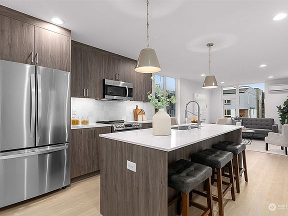 Brand new MOVE-IN-READY residences W/ PARKING by Blackwood Homes. Located less than 1 mile from Woodland Park Zoo, Green Lake & the Fremont Cut! Timeless brick exteriors fade into oversized windows & soft-toned interiors. These expansive homes are raised above street level for private living and boast many features: quartz countertops, stainless steel appliances and kitchen islands, but most important is the space - these homes live better! With entry on the main level, 3 bedrooms all sit above, including the primary suite level - a statement piece w/ vaulted ceilings, walk-in closet and a regal dual vanity bath. Finished w/ a stunning roof deck - ideal for entertaining & taking in those mountain views. Photos of model home. See floor plan.