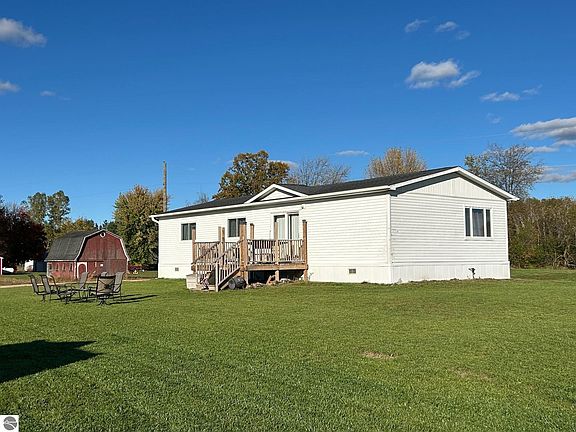 A little bit of country living but not too far from city amenities. Nestled on a private drive, this 1.85 acre property boasts a corner lot, and a 3 bedroom, two bath manufactured home with many of the big ticket items recently updated. Like: Newer wood flooring, Newer roof (approximately 2015), 2022 – New Septic and well, new furnace, new water heater, new windows, new air conditioning. 2023 – New 10 X 12 deck to enjoy that country view, PLUS the TOT has been completed. Enjoy the quiet country views in front and back where there are plenty of deer and other wildlife. Inside, there’s much more than meets the eye! All three bedrooms are generously sized and include a primary bedroom with a full, private bathroom. Large living /great room overlooks the spacious backyard with the new deck that has plenty of room for a pole barn if the 20 X 8 storage unit isn’t enough to contain your equipment or outdoor toys. The dining room is adjacent to the kitchen and living room, as is the kitchen breakfast bar. Laundry hook-ups are conveniently located adjacent to the kitchen as well. This little gem is a lot bigger than it looks, has plenty of storage, and is ready for new owners to move right in!