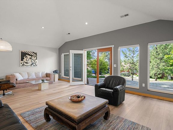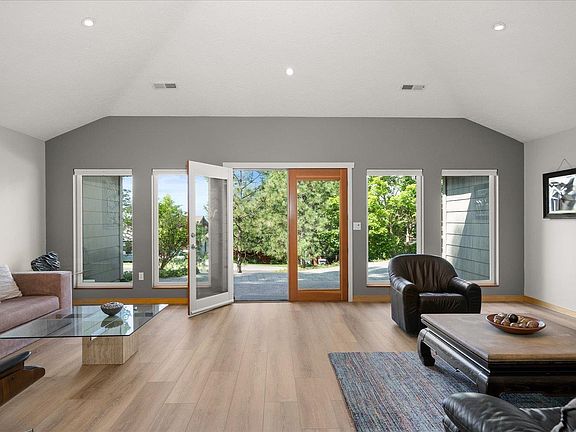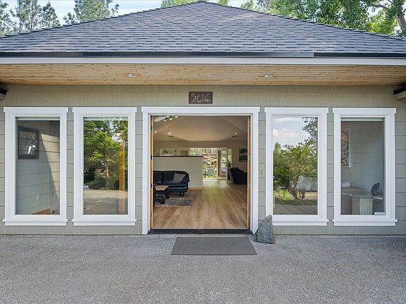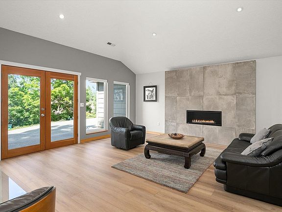 Exquisite zero-step-entry South Hill rancher on a 1/3 acre lot on a quiet street, with forest trail access nearby. Custom built by a local builder for his family, this exceptionally well-constructed single-level home features a 900 sq ft great room with 13' cathedral ceilings, a modern linear fireplace and 3 seating areas. Kitchen & dining area are sectioned off by a beautiful island w/ finished-concrete & natural leathered-granite countertops, stainless steel appliances & custom maple cabinets. Wall-to-wall windows and a skylight fill the great room with natural light. Large master suite has vaulted ceilings, french door opening to back patio, huge 100 sq ft walk-in closet. Gorgeous master bath w/ heated slate floors, skylight, beautifully tiled walk-in shower with dual shower head. Large office/media room. Workout room/home office space in massive 960 sq ft fully-finished, heated & insulated 5-car tandem garage w/pantry & workshop area w/220V outlet for electric car charger or welder. Trailer/boat parking.