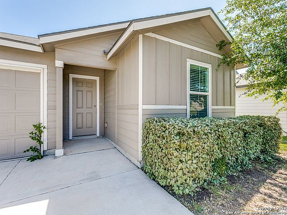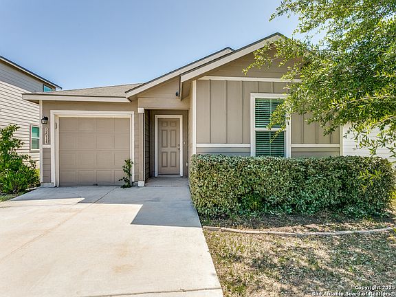Exceptional price on a Move-in ready one-story with solar panels! Backing to a greenbelt, this charming home offers low utility costs, luxury vinyl wood flooring in main living areas, and carpet in bedrooms with 2" blinds throughout. The kitchen opens to a spacious family room, while the private split primary suite provides comfort and walk-in closet. Enjoy a fenced backyard with greenbelt views. Includes garage door opener, all just minutes from BAMC and Ft. Sam!