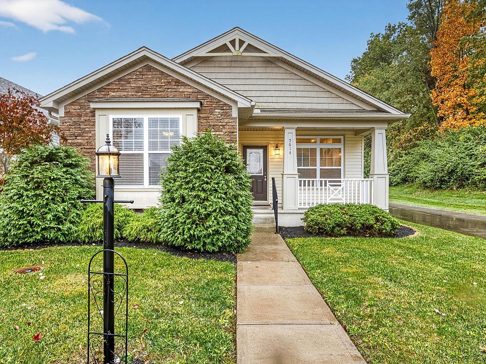 Welcome to this charming 3bd 2ba ranch! This home boasts an open floor plan with beautiful hardwood floors. A gourmet kitchen with 42 inch wood cabinets,large counter bar, perfect for entertaining. The LR features a gas fireplace, great for a relaxing evening. A cozy four-season room to enjoy year-round. The master suite is a true retreat with a luxurious bathroom that includes double corian sinks, sperate shower and soaking tub, walk in closet. The property also features fresh landscaping and a welcoming front porch, making it a perfect blend of comfort and style. Corner lot with view of adjacent greenspace and woods. Community pool, clubhouse, fitness center, walking trail and picnic pavilion. Comfort and convenience lifestyle.