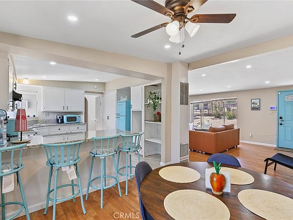 Welcome to this stunning 4-bedroom, 3-bath home, offering 1,719 square feet of pure bliss on nearly a third of an acre. Cook in style in the upgraded kitchen, featuring modern appliances, gorgeous granite countertops, and sleek tile floors. The cozy dining area is perfect for family meals and gatherings, radiating warmth and comfort. This home is completely repainted inside and out, filled with light, and boasts beautiful laminate floors throughout that create a seamless flow. Enjoy the enclosed patio, an ideal space for a game room or a relaxing retreat. The upgraded bathrooms, adorned with stylish tile floors, provide a touch of luxury. Step outside to your private paradise, complete with a jacuzzi/spa and a hammock where you can unwind under the stars, soaking in the breathtaking night skies. Located close to Joshua Tree National Park, Pioneertown, and the iconic Pappy & Harriet's, you’ll have the best of high desert living and entertainment right at your fingertips. Whether you’re seeking a perfect family home, a rental, or a desert getaway, this gem has it all! Don’t miss your chance—schedule your tour today!