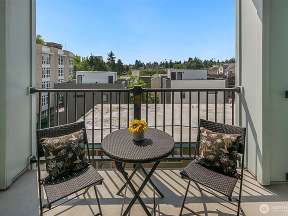 The Metropole is an impressive, boutique bldg of only 31 units, 90% owner-occupied, and it shows! Unit 45 is on the quiet-western side w/sunset & mountain views from every room; generous size deck off lvg room. Fresh interior paint, hardwds in living area, plus a rare double-sided gas fireplace in the living rm & king-sized bedroom-new carpet. Kitchen w/granite counters, gas range, abundance of cabinets & breakfast bar. A floor plan w/ sharp architectural details & character, like no other. Professionally mngd HOA, rental cap, deep reserves, no assmnts & long term ownership. Separate floor for storage;secure garage w/EV charging. Expansive rooftop deck worth using. All within blocks to Ballard's finest! Great value for this high end condo!