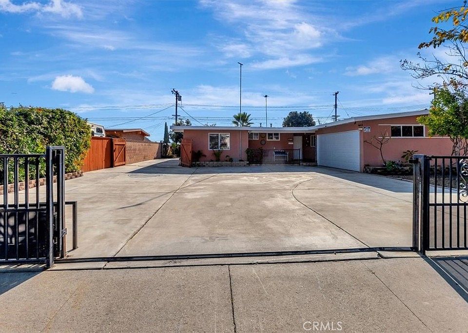 Presenting an impeccably maintained residence in turnkey condition, this property encompasses four bedrooms each with it's own ceiling fan with remote control. Master Bedroom with walk in closet and it's private bathroom. Cozy kitchen, decorated with a unique Spanish tile and complemented with a range, dishwasher, refrigerator, and it seamlessly connects to the formal dining area. The spacious living room is adorned with shutters, and a sliding newer door opens to the charming backyard. This outdoor backyard consists of a sizable storage shed and an abundance of fruit trees, including figs, pomegranates, oranges, apples, guava, and avocado, all enclosed by a wooden back fence and brick fences on the sides. The front yard showcases a variety of fruit trees such as lemon, berries, oranges, and plums, accompanied by the elegant addition of a water fountain in the front side yard and a post lamp light. The bathrooms have been recently remodeled, enhancing the contemporary allure of the residence. Water softener available for the entire house. The flooring throughout, adorned with tiles, ensures ease of maintenance. An office and a substantial bonus room adjacent to the kitchen add versatility to the property, serving as either a grand pantry or a multi-functional space. Extra added feature is solar panel already paid off. The front yard is secured by an electric wrought iron door, providing controlled access, while ample parking space is available in the front of the house as well, supplemented by the convenience of a two-car attached garage and RV Parking. The roof is only nine years old. House has being insulated throughout, even an insulated garage door with tile flooring. New water heater. Newer dual pane windows throughout the entire house. Automatic sprinklers in front and backyard.