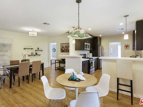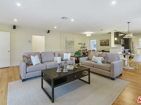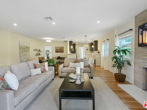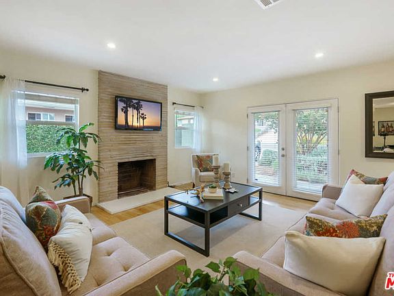 This remodeled Contemporary oasis greets you with French doors opening to a bright and open floor plan with beautiful hardwood floors. The kitchen offers an abundance of cabinet space with gorgeous white quartz counter-tops, stainless steel appliances, and a dual basin sink. Off the kitchen is a separate laundry room. The large master with en suite bath boasts French doors opening to the den or office space which then opens to the back patio. Two additional bedrooms, one with en suite bath, a full size hallway bathroom and smaller guest bath complete this stunning residence. The en suite bedroom, at the front of the home, can conveniently be closed off from the main house and has it's own private entrance. The spacious back patio and yard offer extreme privacy with concrete walls and wooden fencing. Fireplace is decorative only.