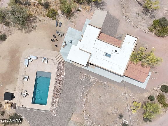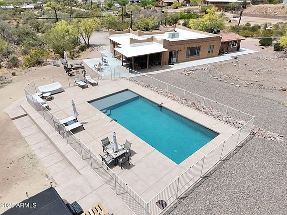 Welcome to your private desert oasis with unparalleled views of Superstition Mountain! Nestled near the western side of Flat Iron, this unique property spans 3 adjacent 1-acre parcels, with the home centrally located on the middle lot. Tucked away at the end of a tranquil street surrounded by horse properties and custom homes, this retreat offers serenity and privacy without the restrictions of an HOA.