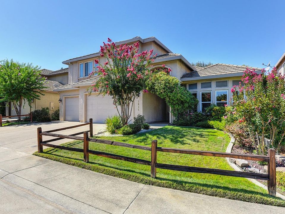 Step inside this impressive property and experience warmth and tranquility. This 5 bedroom, 3 bath home has an abundance of natural light, high ceilings with custom molding and trim and fresh interior paint. Living room opens to a formal dining space. The chefs kitchen has a generous island with granite countertops, abundant storage and pantry. The family room features a fireplace with surrounding built-ins and looks out to the private, large and beautiful terraced backyard and pool. The primary suite is downstairs and features a soaking tub, walk in shower, 2 walk-in closets. Another bedroom and bath are downstairs, with the additional 3 big bedrooms and bath located upstairs. Step out to the tranquil, professionally landscaped multilevel yard with an enchanting garden all on a .32 acre lot. Entertaining made easy with deck, wrap around seating, and built-in BBQ. A special dipping pool with swimming jets and an elevated spa. The thoughtful landscaping includes fruit trees, flower bushes, herbs and plants all on drip system and easily maintained. 3-car garage with a designated workshop area w/ additional outlets & lights. Appliances included. Located in the highly desirable Fair Oaks area with shopping, restaurants, and nature trails. Welcome home to this special Fair Oaks gem!
