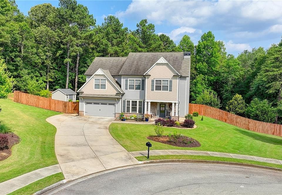 This gorgeous home, situated in the highly sought-after Flowery Branch neighborhood, is move-in ready and offers a multitude of desirable features. Upon entering, you'll be greeted by a bright and inviting living room that strikes the perfect balance between spaciousness and coziness, thanks to its large yet intimate layout and a charming stacked stone fireplace. The living room seamlessly flows into the open kitchen and breakfast area, making it an excellent space for entertaining guests or keeping an eye on the children while preparing meals. The kitchen, adorned in pristine white, not only offers a visually appealing aesthetic but also provides functionality with ample counter space, storage options, and an abundance of natural light that bathes the area. The master suite, located on the second floor, is a true oasis, featuring tray ceilings and a fabulous master bathroom. Unwind and rejuvenate in the luxurious soaking tub, and take advantage of the convenience offered by the double vanities. After a long day, the master suite provides the perfect retreat for relaxation and tranquility. In addition to the master suite, this home boasts large secondary bedrooms, ensuring ample space for family members or guests. Furthermore, there are versatile flex spaces that can be customized to suit your needs, whether you require a home office, a playroom, or a hobby room. One of the standout features of this home is the expansive screened-in back porch, which serves as an ideal space for entertaining. Enjoy your hot tub in your private backyard. Whether you're hosting a lively gathering or simply enjoying a quiet evening outdoors, this porch provides the perfect setting. Additionally, a large outbuilding is available to store all your tools and toys, keeping your living space organized and clutter-free. Situated on a cul-de-sac and featuring a fenced private backyard, this home offers both privacy and security. The ample space provided allows for children and pets to roam and play freely, ensuring countless memorable outdoor adventures for your family. Don't miss the opportunity to make this beautiful home yours. With its move-in ready condition, desirable features, and prime location, your family will undoubtedly love and cherish this residence.
