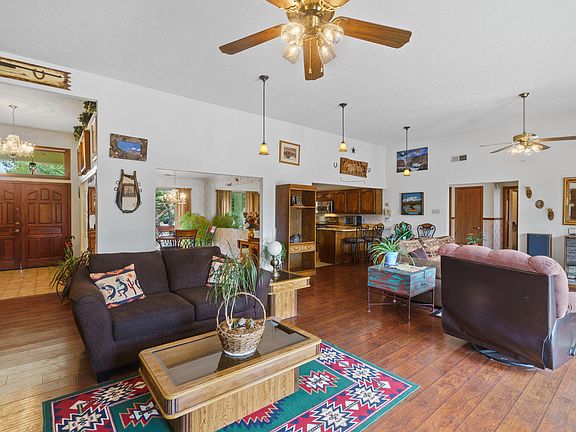 Your little slice of country living in Albuquerque is here!! This lovingly cared for home features updated flooring, high ceilings and tons of backyard space and features! This home is a 4, possible 5, bedroom home with 3 baths, a formal dining room and oversized living room with featured wood stove. Large windows throughout with ADA compliant doorways, single-story and multiple exterior access points make this a great multi-generational possible home. Large windows and doors throughout invite the natural light and the primary suite features its own private patio area. Fully fenced backyard features 2 irrigation wells (1 was for the home before home became part of city water), backyard access with R