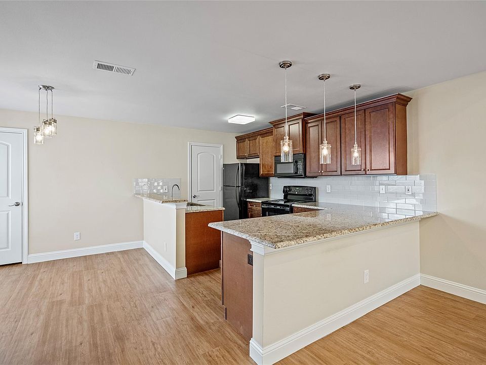 Lots of natural lightSleek granite countertopsStylish tile shower backsplashBright open layout