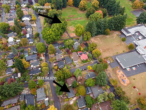 Desirable & Prime Location! HOME ENERGY SCORE 70%! This bungalow is just ONE Block from Woodstock Park and Woodstock Elementary! Just a short walk to everything right in the heart of the Charming Woodstock Neighborhood! Built in 1950's this solid home has original hardwood floors throughout. A big picture window in the front room let's the sunshine in creating light and brightness throughout the main living area. Primary bedroom has walk in closet and 2nd bedroom with it's own entrance. Waiting for your personal style and cosmetic updates to settle in and create a cozy home! Sits above the street with an attached one car garage as well as off street parking. Mature freshly trimmed up trees surround the home and a secluded backyard with a large deck. New 90% Efficiency gas furnace in 2013, Water heater was new in 2013 as well with 2020 code updates.