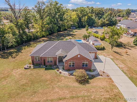 Schedule your private showing today and don’t let this Smithton ranch slip away! This incredible property sits on a full acre with a wooded backdrop and is truly an entertainer’s dream. You’ll fall in love with the backyard oasis featuring a beautiful saltwater in-ground pool, complete with a pool house that offers a kitchenette and half bath, a cabana area for serving food and drinks, and a covered patio perfect for summer gatherings. The home also boasts a 3-car side-entry garage, extensive landscaping, partial fencing, and plenty of open parking—all with no active HOA fees. Inside, you’ll find 9’ ceilings on the main level, wood flooring throughout the main living areas, and a stunning kitchen with an island, granite countertops, stainless steel appliances (including a double oven and pot filler), and a walk-in pantry. The primary suite offers a luxurious bathroom with double-height vanities, a soaking tub, and an enclosed commode. Two additional bedrooms, a full bath, foyer entry, and laundry complete the main level. The finished lower level expands your living space with a high-pour foundation, a spacious family room with kitchenette, daylight window, bathroom, laundry, and three additional finished rooms with walk-in closets—perfect for home offices, craft rooms, or guest spaces. Recent updates include: new roof (2024), water heater (6 yrs), pool liner (7 yrs), saltwater pool conversion, pot filler (3 yrs), and many other thoughtful improvements.