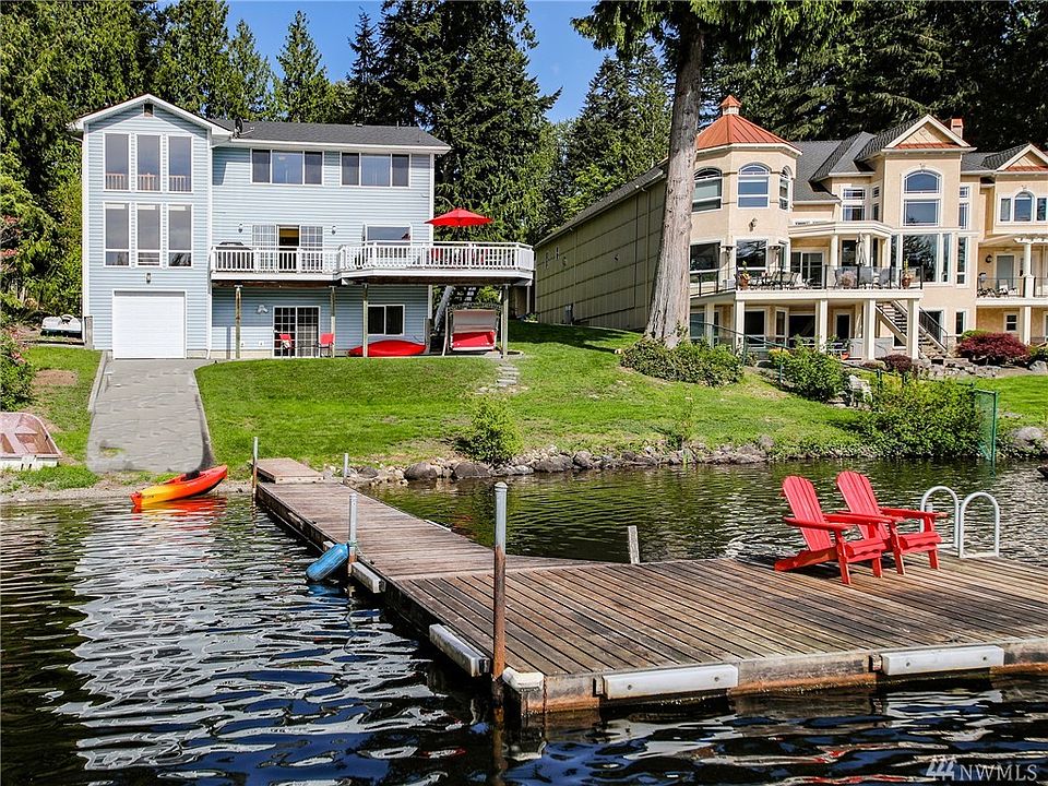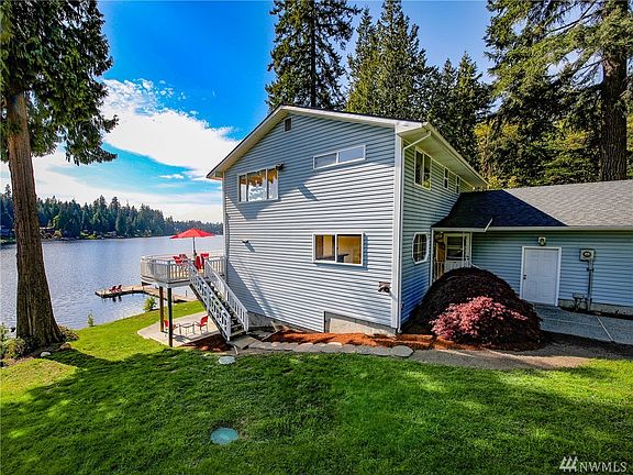 *WATERFRONT LAKE HOME with private DOCK & BEACH* {HAPPINESS FOUND HERE} Features: 3000 SQ. ft of living space, 2 BONUS AREAS, an open floor plan, light & bright, large deck space, located on over ONE ACRE, Two car garage, along with a garage space that leads to the lake (boat/jet skies) it is located on the SUNNYSIDE, this Lake home has an 180-degree view. FLOWING LAKE offers fishing, water skiing, jet skiing, fishing, paddleboarding, canoeing, kayaking, & a 195 acre County park.