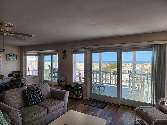 This beautiful Beachfront 1st floor duplex has it all, especially a breath-taking full view of the ocean from inside the house. The photos speak for themselves. The house sits up over the dunes. Beware...many first floor beachfronts in Ocean City sit at ground level so the dunes block the ocean view! Has new kitchen and floors with granite kitchen countertops. 2 full baths and 2 outside showers. 2 Sliding glass doors from the living room and dining room lead to the ocean view deck and you can hear the ocean waves constantly hitting the beach