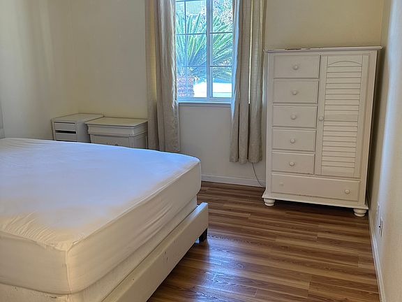Downstairs bedroom is $975/month with a deposit of $900. Newly painted with ceiling fan. The room is furnished with a queen bed, dresser and nightstand. Room can be unfurnished.