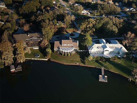Stunning Executive Lakefront Estate, located on the east bank of South Lakeland's Scott Lake. Enjoy breathtaking sunsets, courtesy of panoramic lake views from nearly every room. Down the private drive (formerly 1654 Blue Heron Lane, property was added to create private drive off Live Oak Road in 2017), one enters this custom-built Cape Cod-style home through the open foyer, with immediate water views. Tons of natural light bathe the interior, with open-concept common areas to the south and ground floor Master Suite to the north. Extra bedrooms, loft and bonus room, up stairs. Large gourmet kitchen overlooks breakfast room and enclosed patio, again, with gorgeous lake views. Attention to detail throughout is astounding; from custom millwork and cabinetry, to the massive enclosed rear patio with outdoor kitchen, to the vast storage solutions, oversized garage and the exquisitely landscaped grounds. Too many details to list. Call now for your private viewing of this rare Scott Lake opportunity.