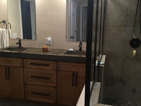 •wood tile throughout •custom cement countertops •custom sliding farmhouse doors inside •tiles master shower •mast bath-garden tub •full spare bathroom •large walk in master closet with built-in shelving •large laundry room •wood faux beams in kitchen with farmhouse sink •cable ready for Direc TV •utilities are NOT included in pricing