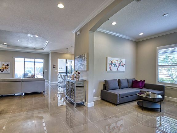 Seasonal Short term - Luxury Single Family Home boasting a Heated Pool & Spa with outdoor Kitchen and Fireplace! Tastefully decorated, 3-bedroom, 3 bath home is filled with thoughtful designer touches. Backing up to a peaceful Community lake, with a community natural preserve area offering direct access to the Legacy Trail (a 10+ mile public trail perfect for walking, biking and jogging). Master Suite includes a glass enclosed shower, soaking tub, dual sinks, water closet and spacious walk-in closet. The Two Guest bedrooms are just as spacious with the 2nd Bedroom providing an ensuite bathroom and the 3rd as an adjoining bathroom to accommodate the overnight guest. There is a cozy den for expanded living, with a designer kitchen with an oversized island overlooking the great room and formal dining area, sliding doors opening to a massive covered lanai that includes the outdoor kitchen and fireplace for that outdoor living!