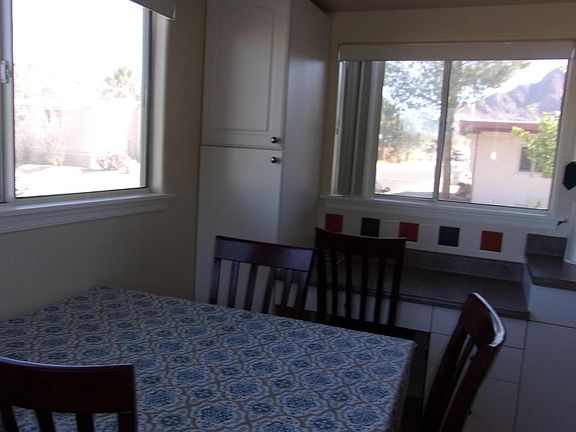 Located on corner lot with arroyo on one side. Beautiful pink grapefruit trees, orange and lemon tree. Automatic watering system. 2 large bedrooms, 2 bath tub/shower combination. Large eat in kitchen with newer cabinets. Some furniture included. Tape and textured walls throughout. Covered porch with mountain views.