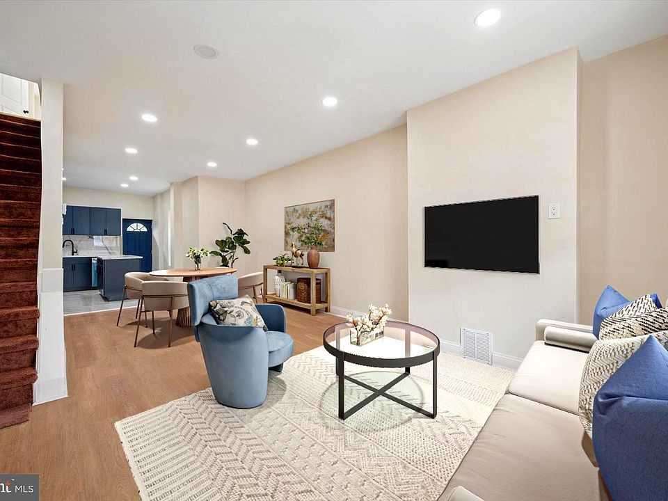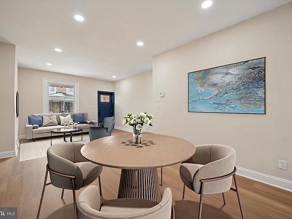 Welcome home to this newly renovated Philadelphia townhome. Walk up to the charming, covered porch and into the main living level to find a straight-through layout featuring luxury vinyl plank flooring. Natural sunlight floods this space. The kitchen pops with navy blue cabinetry and marble-like flooring. A large island is perfect for entertaining friends and family, or just having a casual bite to eat. Through the back door, discover a fenced courtyard—perfect for gatherings and outdoor hobbies. Back inside, a fully finished basement adds even more living space plus a full bathroom with a walk-in shower. On the second level, all three bedrooms have closets that are perfect for the coveted fashionista. There is recessed lighting throughout. The primary bedroom includes a generous amount of space with a bay window that overlooks the front of the home. A second full bath is also on this floor, featuring black and white tile, a walk-in shower, and wood accents. Located in the Cobbs Creek neighborhood, homeowners have access to plenty of restaurants and parks. It is also in close proximity to the Hospital of the University of Pennsylvania. Book your showing today!