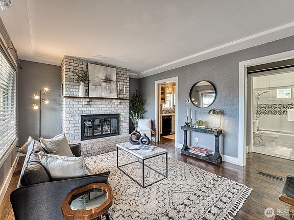Beautifully updated Craftsman combining classic charm with modern comfort. The kitchen features quartz countertops, tile backsplash, and stylish cabinets. Enjoy new lighting, flooring, appliances, paint, and updated plumbing and electrical. A modern bath with barn door adds character and function. Detached garage and carport provide 4 covered parking spaces. Interior and exterior fireplaces create cozy Northwest living. The backyard garden and covered outdoor area are perfect for BBQs or entertaining year-round. Conveniently located near parks, schools, shopping, and commuter routes.