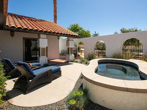 The private courtyard serves as the heart of the home, featuring a large in-ground spa with easy touch-button controls perfect for both relaxing and entertaining year-round.