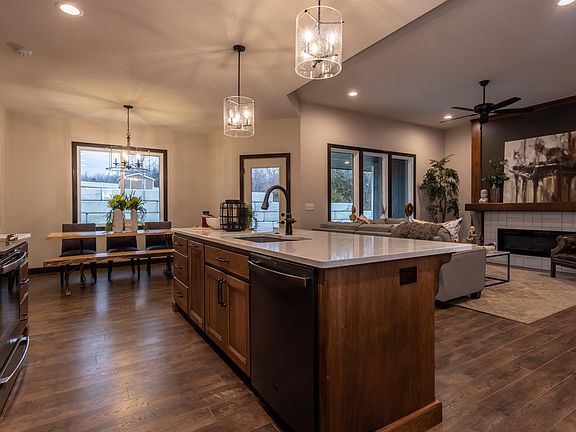 New Bronze Plan ranch in Washburn Rural with 3 car garage, Open floor plan with 5 bedrooms, custom woods kitchen featuring large island with walk in pantry and quartz countertops. Custom designed fireplace and large finished basement on a cul-de-sac.
