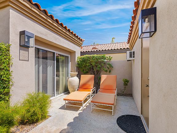Wonderful single family home ! Very open and spacious with loads of light! High ceilings! Tile floors in livingroom, dining area and kitchen. 3 bedrooms and 3 1/2 baths. Den area off kitchen. Fireplace in LR. Brand new carpet in bedrooms. The home faces the Arnold Palmer Golf course and driving range. North, East and South exposure. Spacious patio facing golf course! Located in the luxurious PGA West Development. There are three golf courses to pay and play. Two club houses open to the public including Ernies, a fabulous restaurant with patio dining and inside bar and dining. Located near Old Town La Quinta with lots of restaurants and shops. Very near grocery shopping and additional restaurants, shops, cleaners, Pharmacy.
