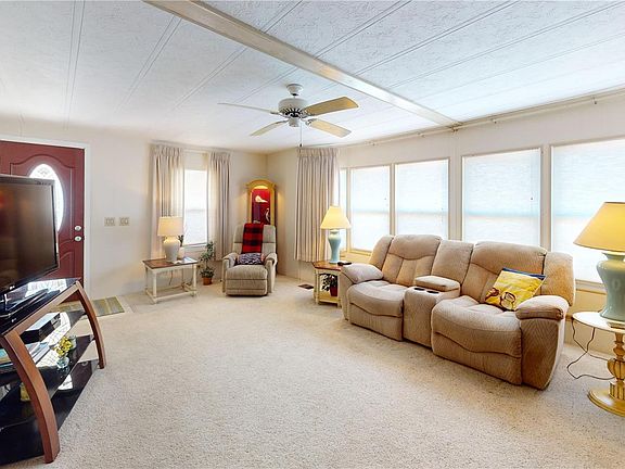 Welcome to Terra Ceia Manor, a charming 55+ manufactured home community nestled in Palmetto, Florida with LOW HOA Fees of $188 monthly, which covers sewer, water, trash pickup, lawn care and all access to park amenities. Ideally located off the I-75 just minutes from both Bradenton and the St. Pete area, with quick access to the Sunshine Skyway Bridge! This 2-bedroom, 2-bathroom TURNKEY Furnished home has been meticulously maintained and updated with luxury vinyl flooring. The plywood has been replaced under the flooring as well too. Step through the front door into the main living space featuring a living room, dining area, and kitchen. The open layout offers plenty of storage with lots of closets throughout. Toward the back of the home, you'll find the bedrooms. The guest bedroom fits a queen bed and has a large closet. It is connected to the jack-and-jill bathroom that has a tub/shower combo. The spacious primary bedroom includes its own private ensuite bathroom and walk-in closet. Both bedrooms have ceiling fans! Additional highlights include a screened-in room for extra living space and a carport for covered parking. Plus a dedicated laundry room with storage attached for added convenience! Terra Ceia Manor offers an active lifestyle with amenities such as a clubhouse, mailroom, library, billiards room, 8 shuffleboard courts, horseshoes, a heated community pool, and a full calendar of social activities. Enjoy bingo, euchre, bridge, coffee hours, game nights, poker, potluck dinners, water aerobics and more. The community is also bike and golf-cart friendly.