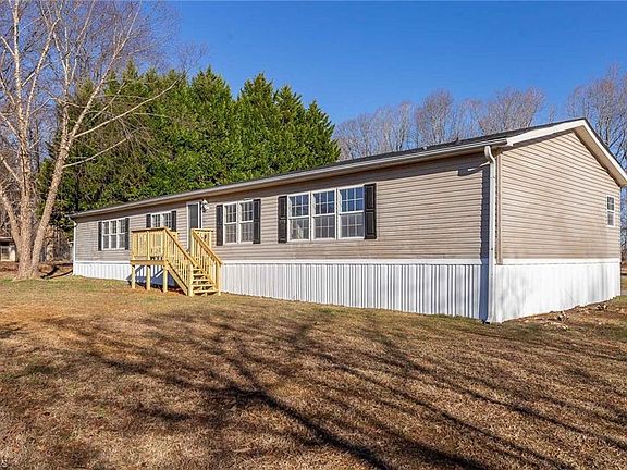 Step in and feel welcome in this spacious, remodeled, manufactured home situated on over an acre. It's amazing location at just a few miles off the highway and close to the shops of downtown Mebane. You can enjoy living in this open floor plan that boasts a massive primary bedroom suite including double walk-in closets with built in storage, gas fireplace, updated kitchen including amazing Samsung appliances and 3 nicely updated bathrooms. Agent is related to owner.