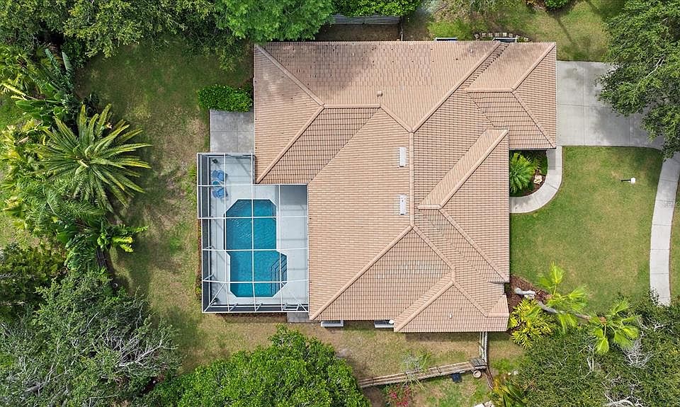 Tucked within the highly desirable Three Oaks neighborhood of Sarasota, 5619 Oak Grove Court is nestled in a serene enclave known for its namesake tradition: each home was originally required to be accompanied by the planting of three oak trees, creating a lush, shaded community rich in character and charm. Positioned on a spacious, nearly 12,000-square-foot lot at the end of a quiet cul-de-sac, this 4-bedroom, 2-bath, 2,422-square-foot residence offers both tranquility and functionality—ideal for growing families, seasonal residents, or anyone in search of a true Florida pool home with room to breathe. Enjoy peaceful mornings in your northeast-facing backyard, where filtered sunrises peek through majestic mature oaks and reflect on the sparkling, oversized pool. The fully fenced yard provides privacy and security for children or pets, while the generous covered lanai sets the stage for effortless outdoor living—from poolside lounging to casual dinners under the stars. Evening strolls through this quiet, low-traffic neighborhood are complemented by glowing sunsets from your front door, all within the safety and value of Zone X—no flood insurance required, and no history of storm damage. This home is also free of CDD fees, offering added savings and peace of mind. Built with durable concrete block masonry and cement-based stucco, the home has been well maintained and thoughtfully updated over the years. Inside, a bright and open layout connects the formal living and dining spaces with a central kitchen and a comfortable family room. The kitchen offers a closet pantry, reverse osmosis for the sink, fridge and ice maker, ample counter space, and a clear view of the pool, allowing for seamless indoor-outdoor living. Sliding glass doors from the primary suite, formal living room, and family room invite natural light throughout and strengthen the connection to the beautiful backyard oasis. The split-bedroom layout features four bedrooms and two full baths, with the fourth bedroom currently serving as a home office or den. With its own closet, it can easily convert into a private guest suite or creative flex space. Notable improvements include a new HVAC system installed in 2023, saltwater pool conversion and resurfacing completed in 2019, and hurricane shutters added in 2021. The roof, a hip-style barrel tile, dates to 1999 but benefits from a tax-effective year of 2004. Additional updates include a new electrical panel in 2019, a water heater from 2016, new washer and dryer in 2019, and updated flooring in three bedrooms and the office/den. The home was freshly painted, power-washed, and professionally landscaped in 2025, further enhancing its curb appeal. Practical touches like the raised AC handler in the garage ceiling for quieter operation and more interior space, pull-down attic storage, and a built-in workstation in the oversized garage make this home as functional as it is beautiful. Located within an A+ rated Sarasota school district and just minutes from I-75, The Legacy Trail, premier shopping, and the world-renowned beaches of Siesta Key, 5619 Oak Grove Court presents the perfect balance of lifestyle, location, and long-term livability. Whether you're snowbirding, raising a family, or simply looking for a peaceful place to call home, this thoughtfully designed and impeccably maintained property checks every box.
