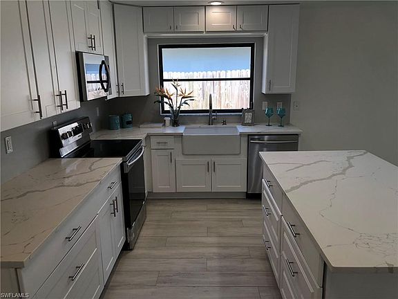 Back on the market. Buyers did not put down initial deposit. Walk to the beach from this large 4 bedroom home on the desirable 500 block in Naples Park! All remodeled and feels like a new home! Gorgeous open kitchen with large island, Quartz countertops, upgraded farmhouse sink, new Samsung appliances, both a living room and a family room, soft close drawers in bathrooms, new Italian porcelain wood looking floors, and more. Vaulted ceiling in the family room and desirable Southern exposure make this home light and bright. Laundry room in residence in a separate room and nice sized back lanai with the same flooring for Seamless indoor/outdoor living. Large back yard and room for a pool. Very close to Vanderbilt Beach, Mercato shops, Whole Foods, movie theaters, Pavillion shopping center and so much more!