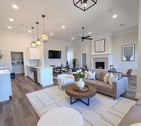 Welcome to this beautifully designed contemporary home featuring an open concept, modern finishes, windows that allow plenty of natural light, and beautiful crown molding. The spacious kitchen boasts with nice countertops, stainless steel refrigerator, and an island perfect for cooking and entertaining.