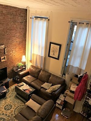 Available asap or Sept 1. Super Clean, Funky 1BR Apt with huge LR area and massive exposed brick wall, open kitchen, nice tiled bath and good closet space. Tin Ceilings and Hardwood floors throughout. Apt has a large sleeping loft . Apt has a huge closet area and space for a home office as well. Quiet, 1st floor unit located in the rear of the building. Fantastic location close to Barclays Center, LIRR and all trains. Shared Backyard w Large garden. Sorry no pets! Call Jeff Winter, RE Broker for an appt
