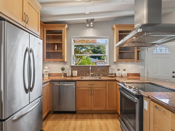 Recently remodeled in 2023, this 3 bed / 2 bath SFH (1009 sq. ft) has hardwood floors, an electric range, refrigerator, dishwasher, a brand-new in-unit washer/dryer, and EV charger. It also includes skylights in the kitchen and living room. This property does have AC in both bedrooms and living room. 1 car garage (attached), 2 side-by-side driveway parking spaces, plus plenty of street parking.